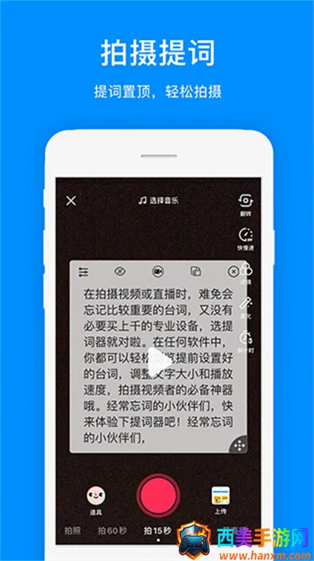 1. 视频提词超便捷:能设置文本滚动速度、文字大小和颜色,拍摄时无需死记硬背台词,让表情更自然,节省拍摄时间,提升视频质量。
