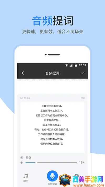 这款提词器为短视频创作者提供了诸多便利。它**选择制作方便,信息全面**,平台信息多样,会员还能享不限时台词提醒特权。不仅能设置多种台词提醒并相互转换,还支持文字导入、滚动速度及字体样式自定义。其视频提词、音频提词等功能实用,能提升拍摄质量与效率,解决拍摄直视问题,实现视频转音频。悬浮提词、提词设置等特色满足多样需求,助力创作者轻松产出优质内容。