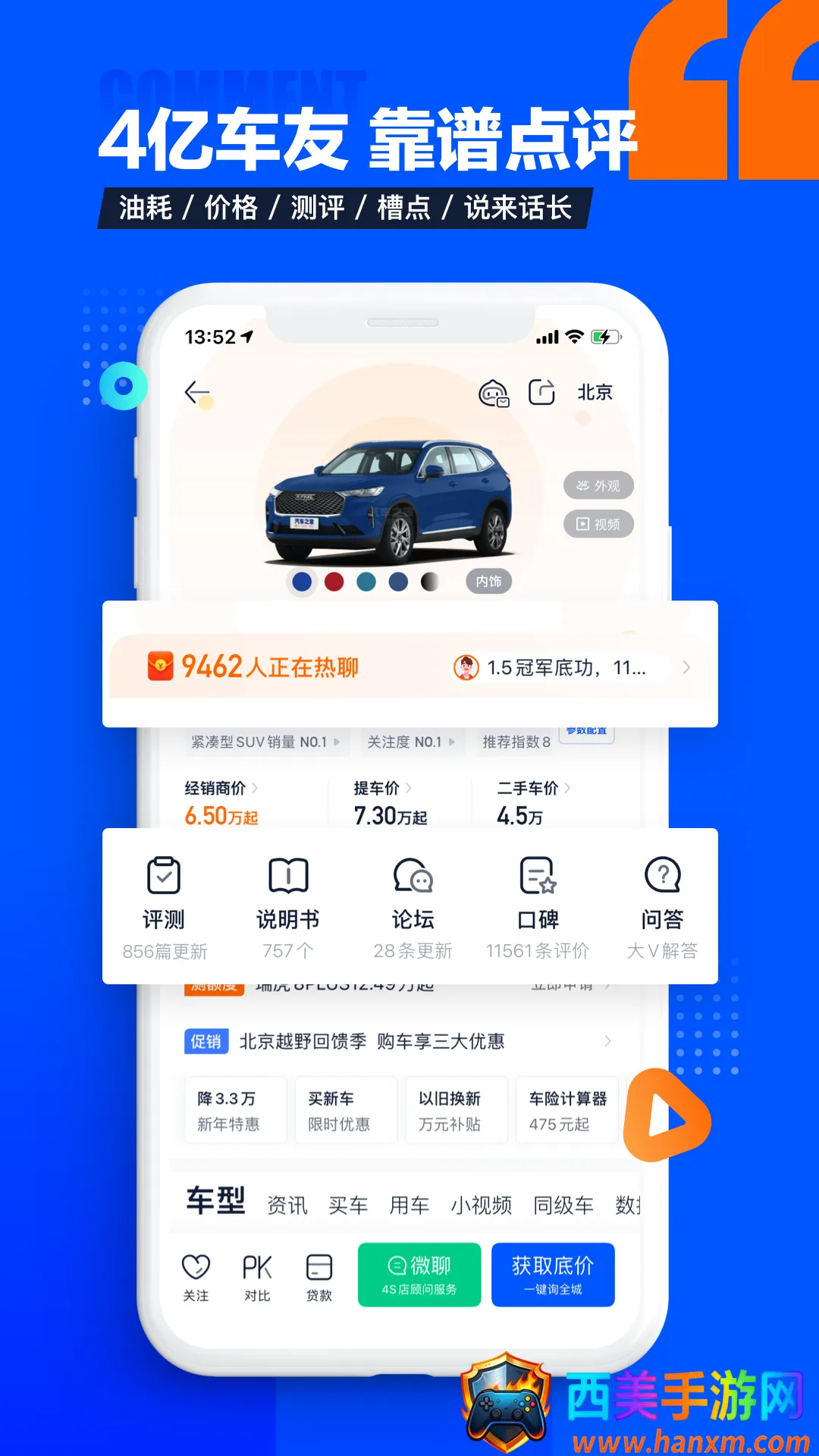 汽车之家提供全面丰富的汽车资讯,涵盖各品牌车型,无论是停售多年还是未上市的车,信息都能找到。拥有活跃的汽车论坛,可与车友交流心得。购车价格实惠,同样车型这里更便宜。贴心养护服务,成为您的私人用车管家。还有超多实用功能,如快速查底价、违章查询等。多入口场景便捷使用,手机福音,无论是应用商店搜索、浏览器搜索还是手机负一屏等方式,都能轻松获取,纵享优质内容与极致服务,一步直达您所需。