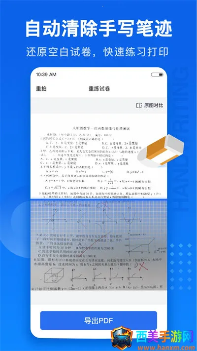 试卷1002026官方正版是一款试卷错题整理软件。能高清扫描试卷,去除做题痕迹生成新卷,自动划分学科,智能擦除笔迹,还可分类管理错题,支持图片转文档,方便学生整理错题、高效复习。