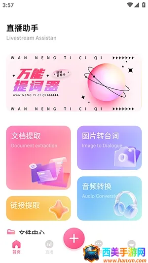 2. 多样导入方式:直播提词支持文档提取、图片转台词、音频转换、链接提取等多种方式导入文案,还能进行悬浮提词的各种设置。