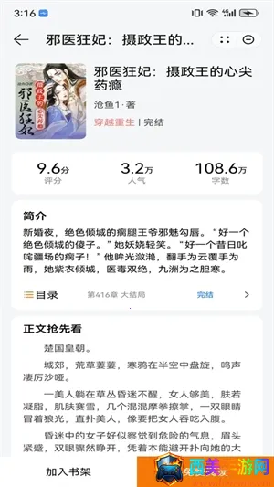 想尽情畅游小说世界吗?那就来试试夜猫阅读吧!它能满足你对小说阅读的所有需求。这里有海量小说资源,各种题材类型应有尽有,热门新书和经典佳作实时更新,让你告别书荒。你还能建立私人书库,随心收藏喜爱的作品,分类整理形成专属书单,随时想看就看。阅读界面设计超贴心,支持字体大小、背景颜色、翻页方式等个性化调节,适配你的阅读习惯。夜间模式更是一绝,光线柔和不刺眼,夜晚阅读超舒适,不会影响睡眠。从都市到玄幻,从悬疑到言情,丰富的类型任你选。有了夜猫阅读,你就能轻松打造只属于自己的精神角落,享受沉浸式的阅读体验,随时随地开启精彩的小说之旅。快来本站下载安装夜猫阅读小说 app 吧!