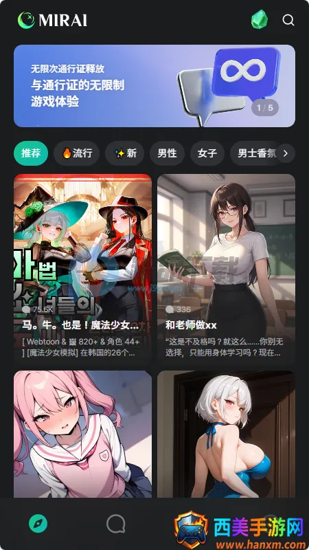 Mirai是一款主打情感交互与剧情沉浸的AI互动应用,以故事引擎为核心,对话有剧情推进与情感联结。采用视觉小说式叙事界面,交互有代入感。支持谷歌登录,能创建角色、分享故事,有多种聊天类型可选 。