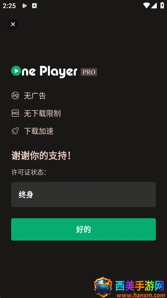 OnePlayer 是一款实用的高清视频及音乐播放工具。它除具备播放功能外,还支持网页视频下载,操作方便且界面清爽。能快速检索手机上的视频及音频文件,流畅播放。它支持视频投射到电视,是高速视频下载器,支持离线音乐播放。自动扫描音频文件,可按多种方式查看。有浮动窗口、私人视频库保护隐私。支持在线和离线观看视频,内置强大播放器,能轻松控制音量等。支持多种视频和音乐格式,不断更新完善功能。