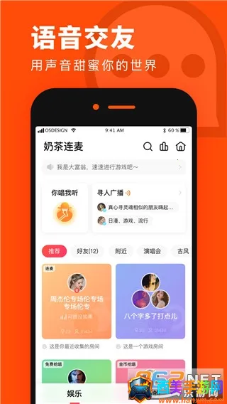 奶茶连麦是一款免费的在线语音社区软件。在这里,你能拥有各种实时语音互动场景。比如在线KTV,在虚拟房间里可随意点歌演唱,它不仅提供伴奏,歌词还能同步显示,而且打分精确到每个字,就像在真实KTV一样。你还能通过连麦,和各地兴趣相投的小伙伴聊天互动做游戏。它解决了大家想轻松交友、畅快娱乐的需求。不管是想找个聊天搭子,还是想一展歌喉,它都能满足。有了它,交友不再局促尴尬。支持微信和唱吧账号登录,方便快捷。众多声音好听的用户都在这,只要你声音好听,说不定就能邂逅爱情。还有很多游戏大神,超多社交玩法,趣味无穷,随时随地都能开启交友聊天新模式,快来下载体验吧。