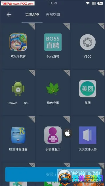 3、多开应用:支持多开淘宝、支付宝、闲鱼、百度云等各种应用,以及微信、QQ、派派、陌陌、微博、快手、探探等社交应用,还有部落冲突、王者荣耀等游戏应用,让文件存放更私密安全,欢乐能多份分享。