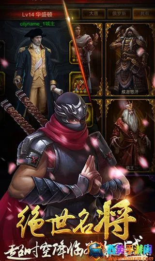 特色名将系统:能招募到各文明真实历史上的名将,如华盛顿、成吉思汗、秦始皇、亚历山大、织田信长等。名将依据文明和个性在属性和技能上有区分,不但能行军打仗,还可担任守将和城主管理内政,不同时空不同文明的名将交锋,带来别样体验。