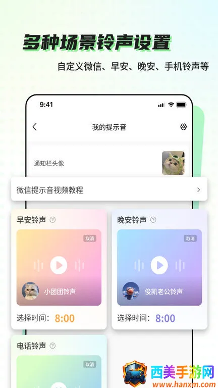 空空鱼优势显著。它汇集海量不同类型提示音,可自由选择、随时更换,支持无限次下载。能自定义专属提示音,用自己或亲人声音设为提示音。还可和好友共享优质提示音,享受优质服务。能一键搜索查询提示音,自行决定开启时间。此外,提供社交功能,可发布作品、编辑名称,还有火热排行音可自由试听选择,满足多样需求,让手机使用更有趣味与个性。
