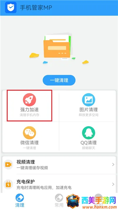 1、点击清理页面的【强力加速】功能。