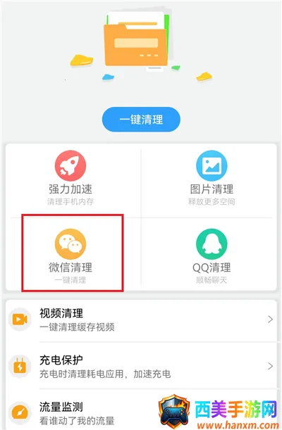 1、点击下图框选出来的【微信清理】功能。