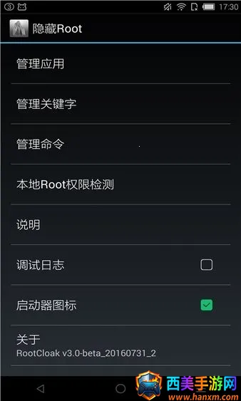 rootcloak是功能强大的安卓系统工具软件,能在线隐藏应用,适合root用户。亮点是可隐藏root状态享更多权限,避免应用限制。优势有软件锁定、管理等多项功能。还能自由定制手机,使用时按步骤操作,禁用在开机时按键。