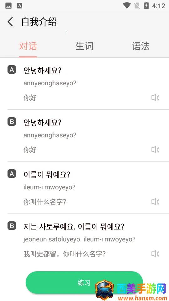 如果你想学习韩语字母发音表读法,这款软件绝对是你的不二之选!它由南宁市潮嘉科技有限公司开发,专为韩语初学者和自学韩语者打造。软件以表格形式直观展示韩语发音表,涵盖21个元音和19个辅音,发音纯正靠谱。其特色功能丰富多样,场景短语结合生活实际,助你轻松记忆;全本发音表让你系统掌握基础;课程学习有视频和音频教学,助你快速吸收知识;双语翻译方便对照理解。亮点也十分突出,课文朗读是高效学习方式,口语练习让你大胆开口说,课后练习能检验学习成果。软件解析生活中的韩语交流短句,提供字母表助你从零开始,课程丰富随时学,支持后台播放和语音播放,还有重复播放功能,通过反复收听来学习日常交流句子,让你轻松掌握韩语字母发音读法。