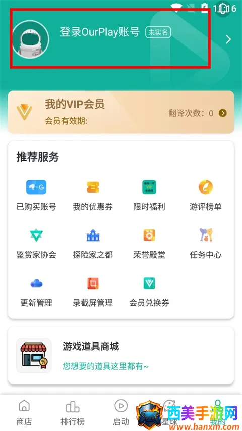 1、进入OurPlay主界面后,点击“我的”,进行登录;