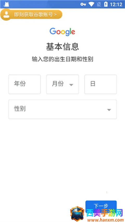 8、填写出生日期和性别,这里要注意,我们一定要选择18岁以上的年龄,成年即可,填好点下一步;