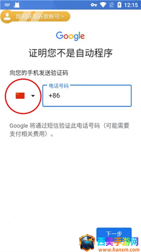 11、验证手机号,国家我们要选择中国,填写自己的手机号,点击下一步;