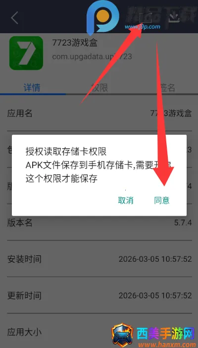 2、进入后点击右下角的下载安装,并打开存储权限