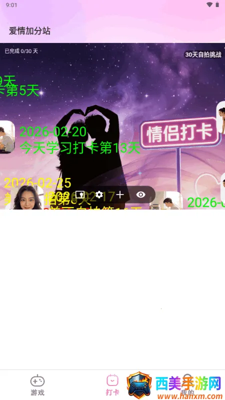 有情侣打卡功能,30天自拍挑战、瑜伽练习学习打卡等多种挑战,可共同完成成长目标;还有心动日记能记下恋爱点滴,纪念日提醒让重要日子不再错过,情话库提供海量甜蜜情话。