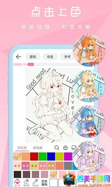 漫芽糖是一款备受欢迎的动漫涂色应用。它能让用户轻松绘制喜爱的动漫角色,即使是绘画小白,通过简单涂色操作也能创造出令人惊叹的作品。用户可在丰富的模板中挑选人物和图像,用心完成自创画作或模板涂色,收获满意成果。自己上色的作品不仅能设为手机壁纸,还可打印成装饰壁画。其界面清晰直观,能更好体验涂色细节。提供丰富画笔类型,有创新万花筒绘图模式,播放功能可回放绘画过程,颜色选择器支持随机生成鲜艳色彩,还能实时分享作品,带来放松且充满乐趣的绘画体验。无论是想发挥创意,还是学习绘画技巧,漫芽糖都能满足。快来开启你的动漫涂色之旅吧。