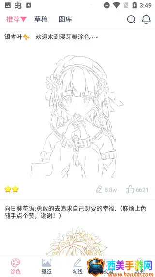 1. 下载并打开漫芽糖app,首页展示了许多推荐图库等待你来涂色;