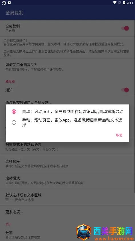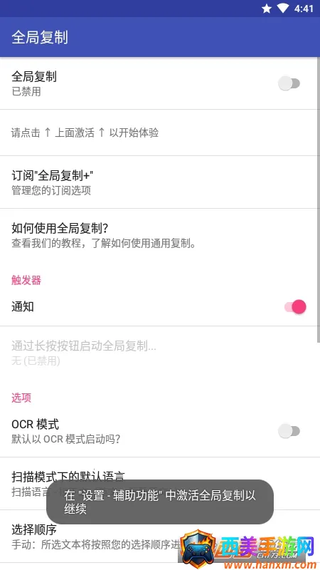 全局复制是一款无需ROOT的万能复制器,支持OCR文字识别复制。能提取手机各种内容,突破复制限制,全场景文本复制,多方式激活,零网络依赖,全功能免费无广告,轻松满足复制需求。