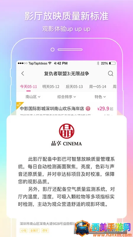 影院齐全:将各个城市的电影放映影院都加入到应用中,无论身处何地,用户都能购买到所有影院的电影票,选择多样。