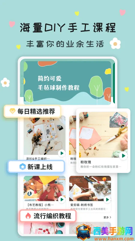 3. 精心设计每日精选推荐,推出手工活新教程,提供流行编织教程等,紧跟手工潮流。