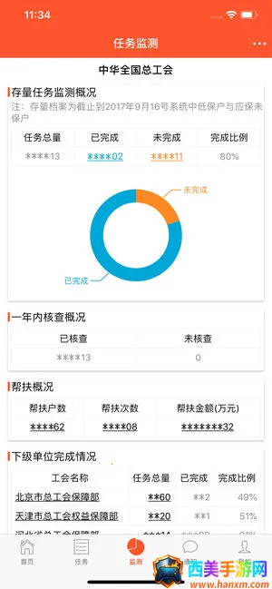 3. 可进行任务监测,实时追踪困难职工帮扶进展,方便及时掌握情况。