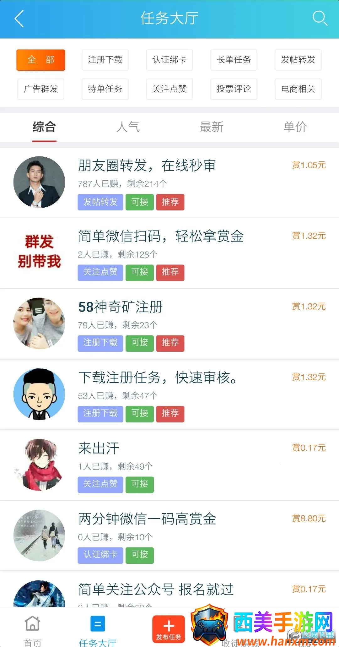 趣闲赚是一款专注于悬赏任务与社交推广的移动赚钱平台。它能帮你利用碎片时间赚钱,解决想轻松赚点零花钱的需求。平台任务类型丰富,有应用试玩、注册认证、问卷调研、社交分享等。还有智能任务推荐,根据你的情况精准推送,提升完成效率和收益。奖励体系完善,新手任务、日常任务、成就任务等,完成就有奖励。支持微信、支付宝秒级到账,最低0.3元起提。通过收徒系统建立团队,能享受徒弟任务收益分成。悬赏任务多,赏金丰厚,任务奖金托管平台,做完就能领,还支持一元提现。邀请好友也能赚提成,首次提现奖励1元,还有2级邀请分红模式。商家发布任务审核快,0元手续费,采用体验式广告,能真正体验服务,优化效果。总之,趣闲赚是个正规可靠、能让你轻松赚钱的平台。