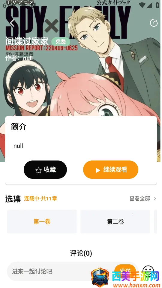 3、选择一个漫画打开的一,点继续观看。