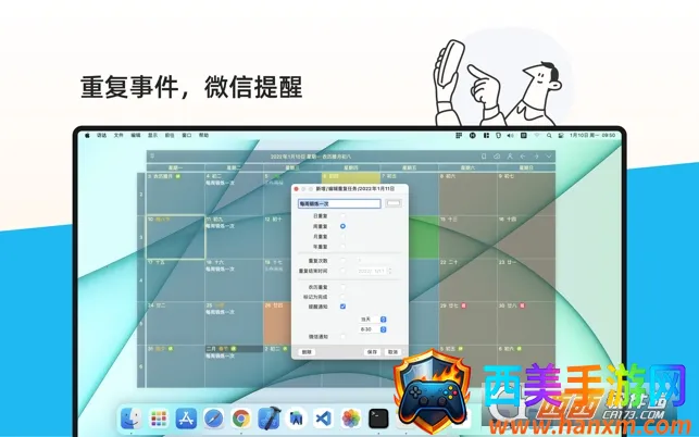 这款日程管理软件相当不错。它能提供农历节气、节假日、法定假日显示,让你轻松知晓重要日子。支持多端同步数据,不管是在PC电脑、Mac电脑、iPad还是手机上,都能实时共享数据,团队协作也很方便。还能微信提醒重复事件,像重要纪念日、信用卡还款、学生课程等,设置重复任务后,日历上会清晰显示,再也不用担心错过。而且可以透明显示在桌面壁纸上,按快捷键就能快速回到桌面编辑或查看日程安排和日历信息,使用起来十分便捷,能帮你把生活规划得井井有条。