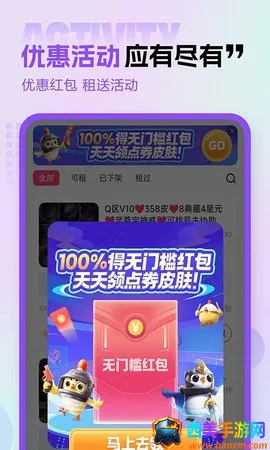 1. 新人免单:新人注册可领10元红包,能任意玩高端账号,轻松开启游戏之旅。