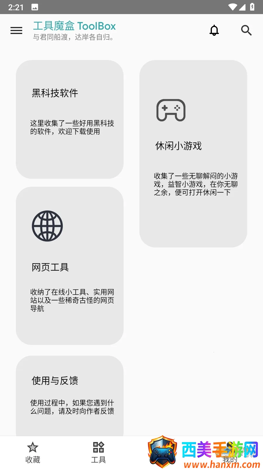 工具魔盒是多功能工具平台,内存小、界面干净。能处理图片、游戏、文件转换等,功能全且分类细,含天气、手电筒等日常工具,还有文件管理、系统清理等功能,集成多种实用工具满足多样需求。