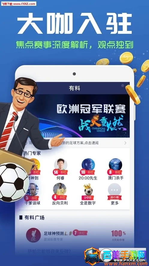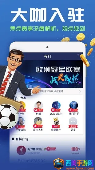 1. 近百位足球专家媒体人入驻,提供赛前情报、战术拆解及结果预测,用户能通过料币解锁独家观点。