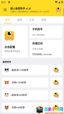 4、操作不繁琐,适合所有人,一键修改解锁超高清帧率,不同型号手机均可自定义修改画质。