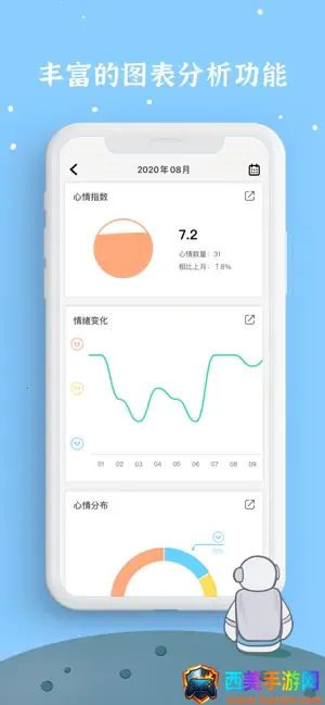 心情晴雨表,每天坚持记录,能看到按周月绘制的心情温度曲线,随着时间变化,曲线会发生有趣变化。