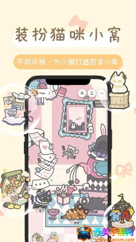 2. 多样装扮趣味十足:可随心装扮猫咪小窝,有丰富主题家具和多种风格可选,还能收集盲盒装扮。