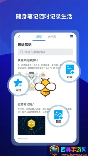 2. 强大收藏:打破传统收藏仅能保存网址的单一功能设计,能收藏图片、正文等,添加至导航收藏及笔记简单快速,想怎么存就怎么存。