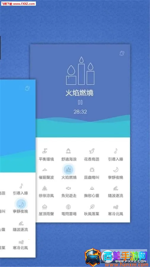 3. 自然声音丰富:拥有各种自然声音,如波浪声、流动水声、滴水声等,多样声音选择,帮助用户更快放松。