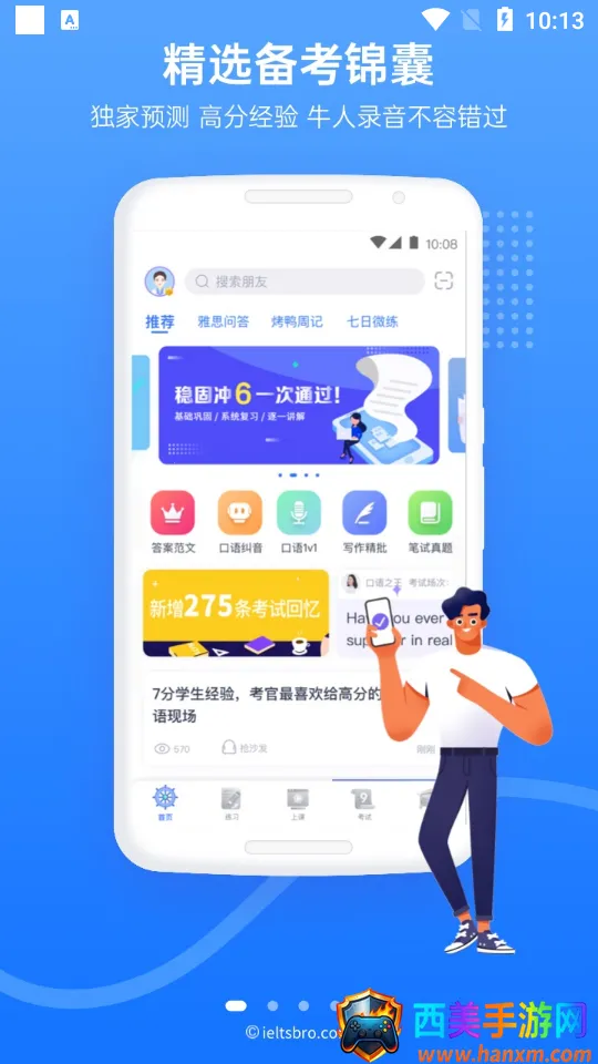 雅思哥为用户提供海量雅思相关资讯,包含留学攻略、高分经验等。有专业讲师在线直播授课,教授学习技巧。其练习版块能全面练习听书读写,还可上传考试回忆,列出高频话题清单,让练习更有针对性。此外,还有专属分手服务、全球考场回忆、独家题库等特色,助力用户早日通过雅思考试,摆脱雅思困扰,轻松提升英语水平,高效备考雅思。