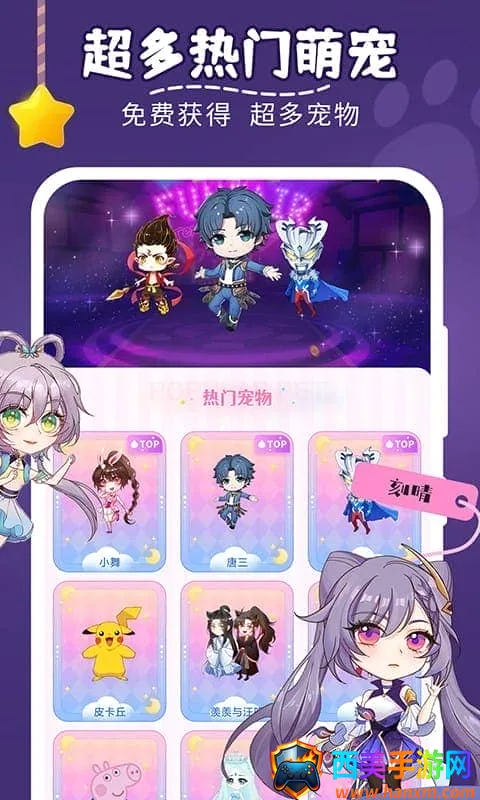 1. 超200款热门萌宠等你挑选,有二次元、Q版爱豆等各种类型,总能找到你喜欢的,海量萌宠任你选。
