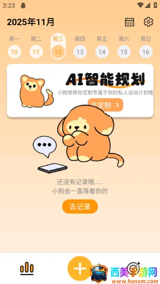2. 情感化萌宠陪伴:可爱小狗界面,情感化萌宠陪伴,运动疲惫时给予支持,轻游戏化系统激发动力,让运动更治愈。
