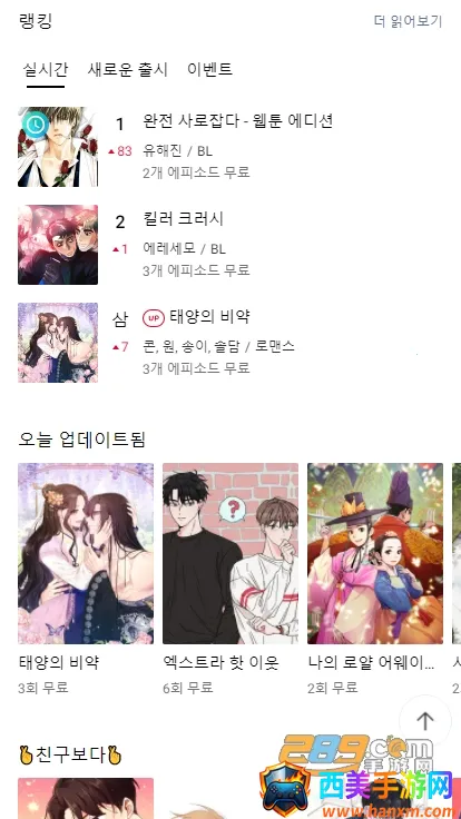 Lezhin手机版优势显著。它是正版韩国漫画阅读平台,有超多原创资源,题材丰富。与众多人气韩漫作家签约,能看到优质漫画,还可和作者互动。能一键收藏喜欢的漫画,随时随地观看,永久保存观看记录。提供个性化推荐,自动筛选感兴趣的漫画。支持离线阅读,没网络也能畅享追漫。无广告打扰,阅读环境纯净,给用户沉浸式体验,让漫画阅读更畅快。