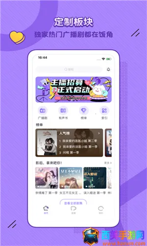 这是一个专业的广播剧收听平台,有丰富的有声资源。汇集了众多精彩广播剧,能根据用户喜好推荐内容。涵盖多种类型,提供不同排行榜单,便于用户挑选。这里提供高清音质和多样类型的声优表演,优质的广播剧资源支持离线下载,让您随时随地享受最舒适的听书体验。还能根据用户搜索习惯精准推送内容,点击即可播放,享受高质量多媒体音效,支持一键下载全集,通过WiFi下载节省流量,随时安心收听。