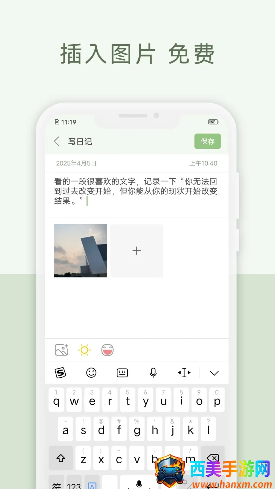 2. 图文融合记录:文字与图片结合,还能添加心情和天气,使记录更生动具体,还有多样模板满足个性需求。