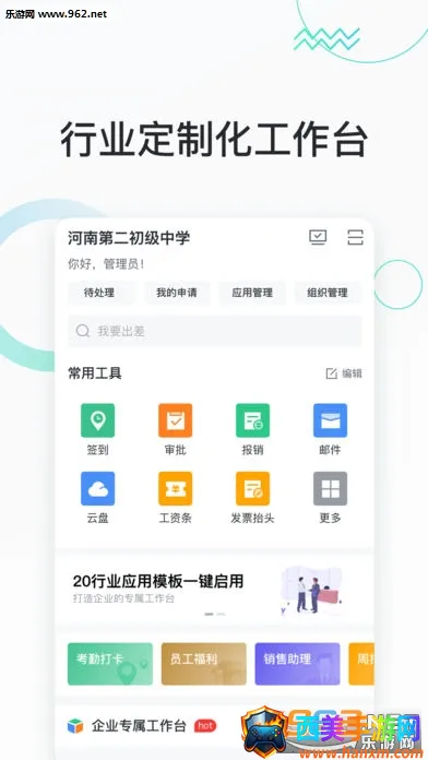 2、管理应用丰富:涵盖考勤管理,内外勤打卡全自动管理且智能统计;企业审批有海量模板,满足个性化自主流程;员工报告能掌上提交,还支持自定义设置。