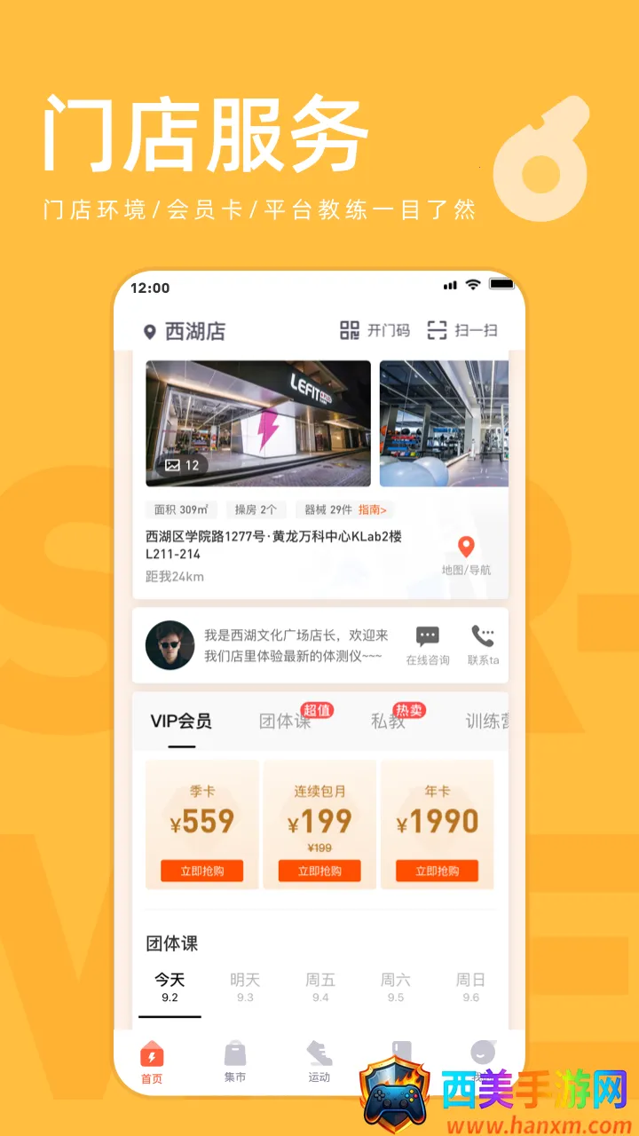 2. 智能便捷体验:全国超1000家门店覆盖,居家1公里健身圈,24小时营业,自助扫码入场。智能运动科技带来便利,环境舒适无推销。