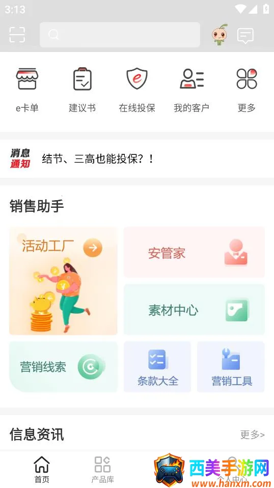 汇e保是中汇人寿面向服务人员研发的数字化办公平台。它能为用户提供诸多便利。首次启动需阅读并同意用户协议进入主功能页面。首页有电子卡单管理、新建保险建议书、在线投保流程及个人投保记录查询等核心保险业务操作入口,还整合了多种数字营销辅助功能。个人中心支持绑定微信账号、配置专属小程序、获取帮助与提交反馈等。其亮点众多,可在线购买保险,获取优惠信息与售后服务,查看保险产品详细信息,还能定期提醒支付保费避免忘续保。软件功能丰富,比如业绩查询、续收管理、保险商城、产品库、e学堂等。有了汇e保,服务人员能更好地管理客户信息、开展保险业务,客户也能享受便捷的保险服务。若你想知道汇e保怎么登录,其实很简单,在下载安装好汇e保app后,按提示操作就能轻松登录啦。