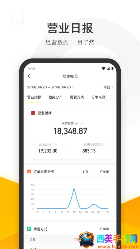 精准数据统计分析:可对营业指标数据精细化统计,查看每日营收情况、用餐方式、订单来源等精准数据,助力更好地管理店铺,了解客户需求。