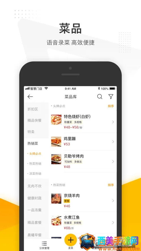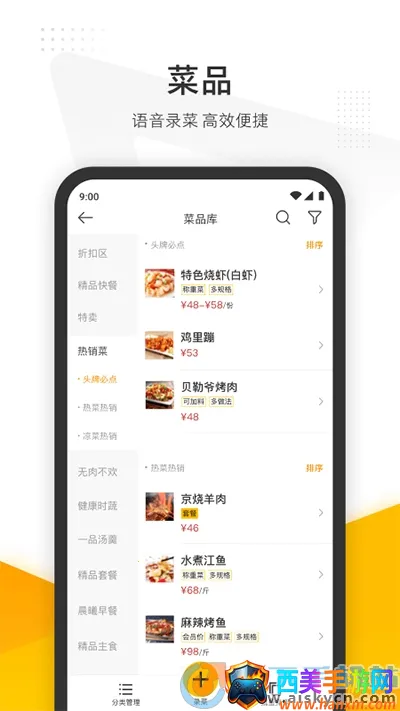 它能统计每天的营收额,分析点单率高的商品,让你清楚店铺销售情况。支持扫码点餐,2秒就能完成自助点餐设置,解决人手不足问题,还能预点餐锁定订单。会员营销功能提供多种方式提升复购率,外卖管理自动接单,后厨自动打印。宴会管理可预订菜、收定金等。还有超强营销功能,多种满减方式促进营收。