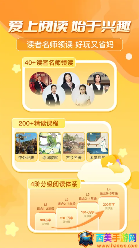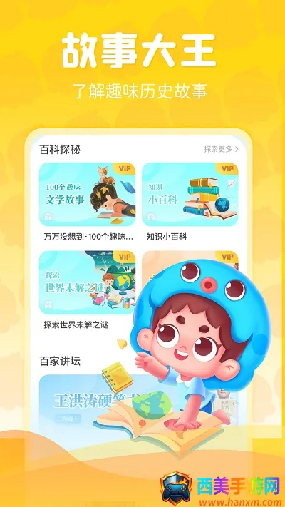 3、趣味学习课程:包含玩游戏学汉字、聆听历史故事、多款趣味闯关等课程,让学生开心识汉字、玩诗词、学成语,全面提升语文综合能力。